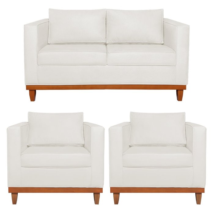 Kit Sofa 2 Lugares e 2 Poltronas Europa Bouclé Branco - Amarena Móveis
