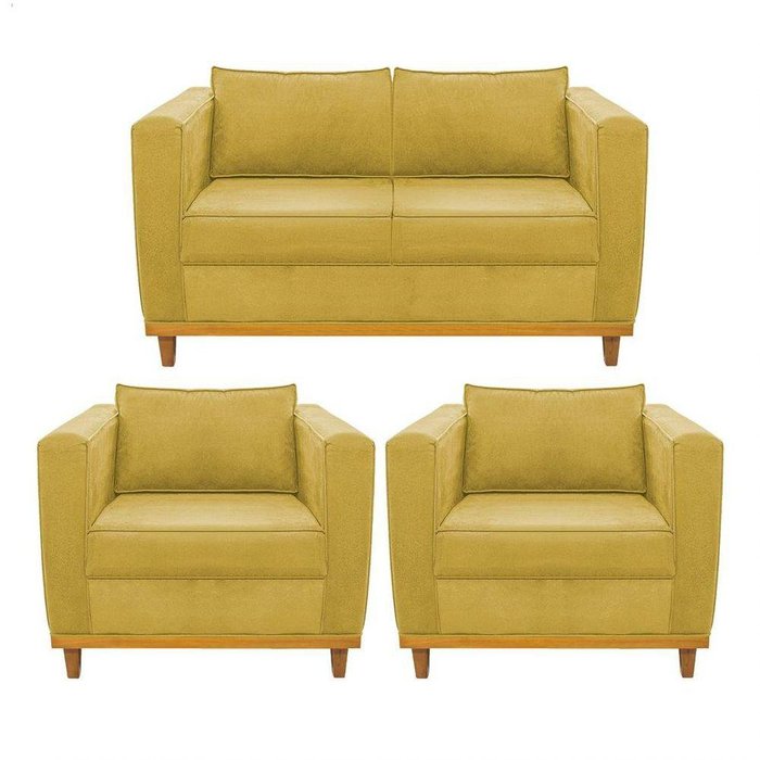 Kit Sofá 2 Lugares E 2 Poltronas Europa Suede Amarelo Amarena Móveis