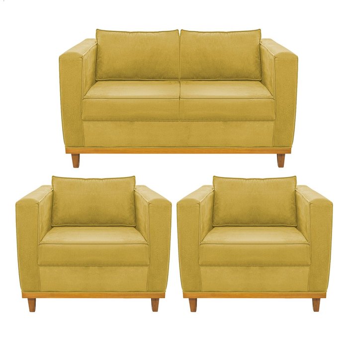 Kit Sofá 2 Lugares e 2 Poltronas Europa Suede Amarelo - Amarena Móveis