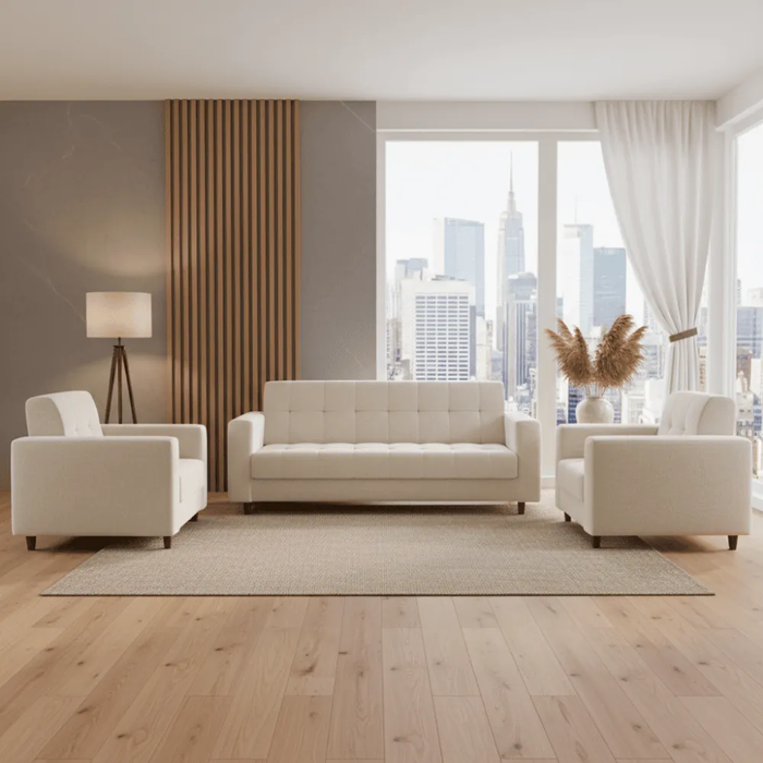 O Conjunto Arezo, composto por Sofá de 2 lugares e 2 Poltronas em linho bege, combina design moderno, acabamento sofisticado e conforto duradouro. Seu revestimento de toque macio traz elegância e harmonia aos ambientes, enquanto a costura detalhada no assento e encosto valoriza o visual com um toque artesanal. A estrutura em madeira de eucalipto reflorestado oferece excelente resistência, sustentando até 120 kg por assento, enquanto a espuma D-23 de alta densidade garante conforto uniforme e sustentação ideal. Os pés chanfrados em madeira castanho completam o estilo contemporâneo, proporcionando firmeza e charme extra à decoração da sala. Ideal para quem busca unir beleza, qualidade e funcionalidade, o conjunto Arezo transforma o ambiente em um espaço acolhedor, elegante e convidativo perfeito para momentos de descanso, leitura ou receber visitas com muito estilo.