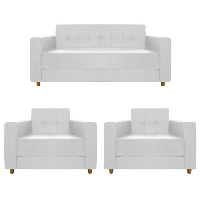 Kit Sofá 2 Lugares e 2 Poltronas Suede Branco Branco