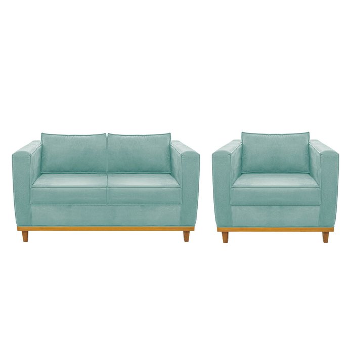 Kit Sofá 2 Lugares e Poltrona Europa Suede Azul Tiffany - Amarena Móveis Azul Tiffany