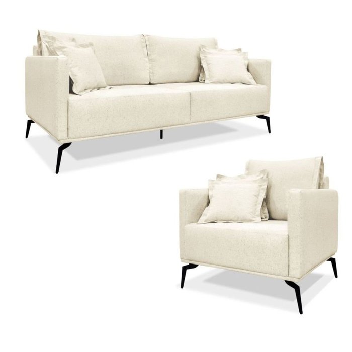 Kit Sofá 220cm e Poltrona 80cm Ligia para Sala Linho