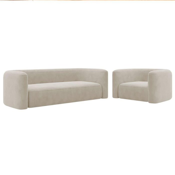 Kit Sofá 3 Lugares 180cm E Poltrona Orgânica Luxo Recepção Melina Linho - Adj Decor Cor Cinza Claro