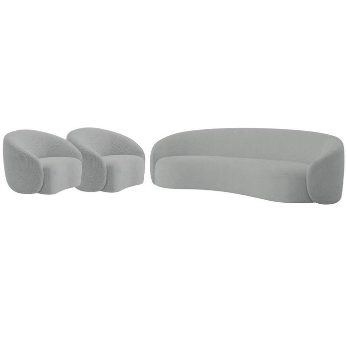 Kit Sofá 3 Lugares 200cm E 2 Poltronas Orgânica Luxo Recepção Amore Bouclé Cor Cinza