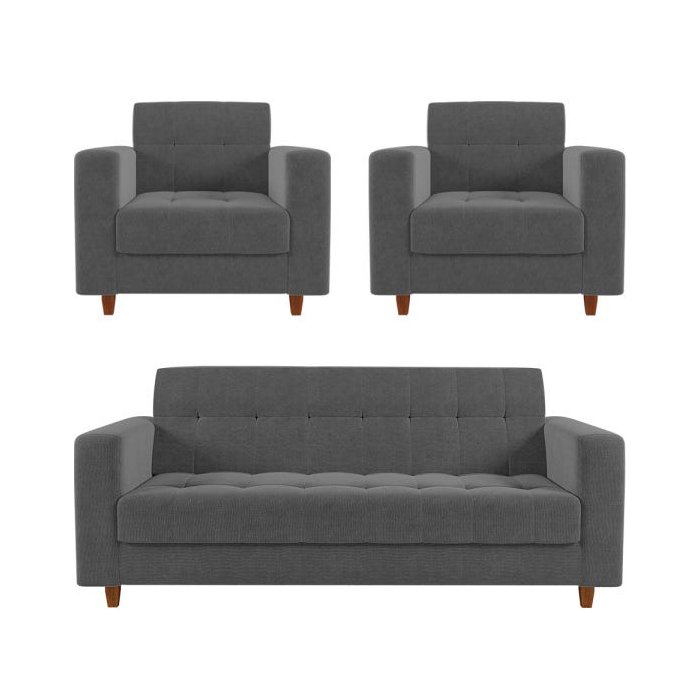 Kit Sofá 3 Lugares e 2 Poltronas Arezzo Linho Grafite A26 Pés Chanfrado Castanho Grafite