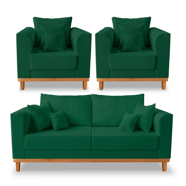 Kit Sofá 03 Lugares + 02 Poltronas Beny Viena Suede - Madeira Prima Deccor