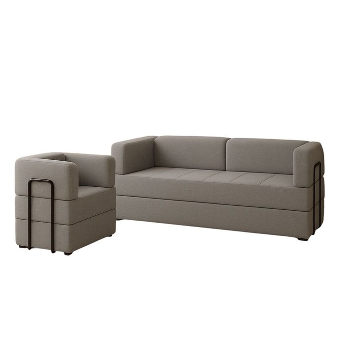 Kit Sofá e Poltrona na Caixa Modular Roberta para a Sala:cinza