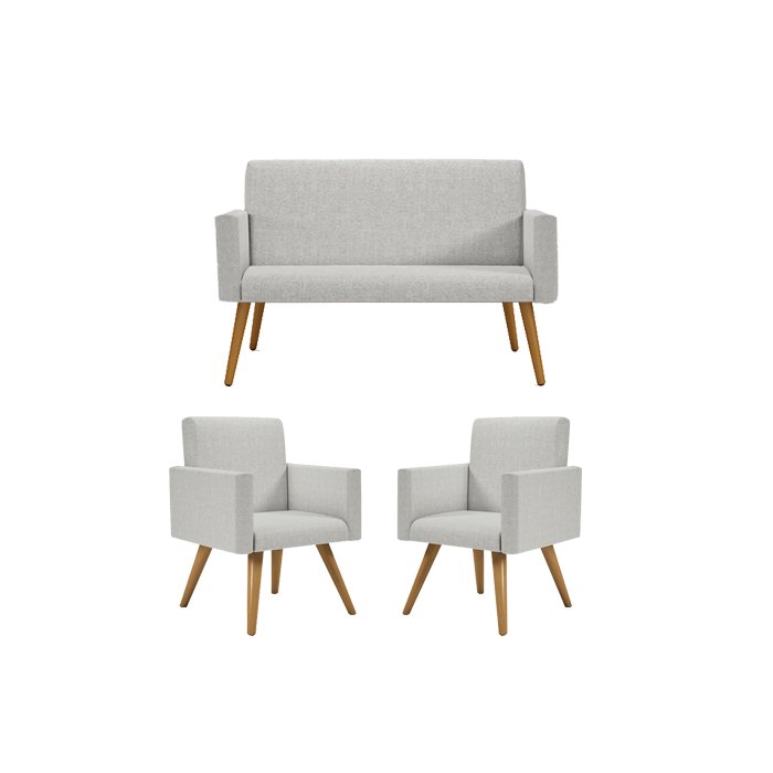 Kit Sofá Namoradeira + 2 Poltronas Decorativas Tecido Linho Cor:Linho Cinza Claro