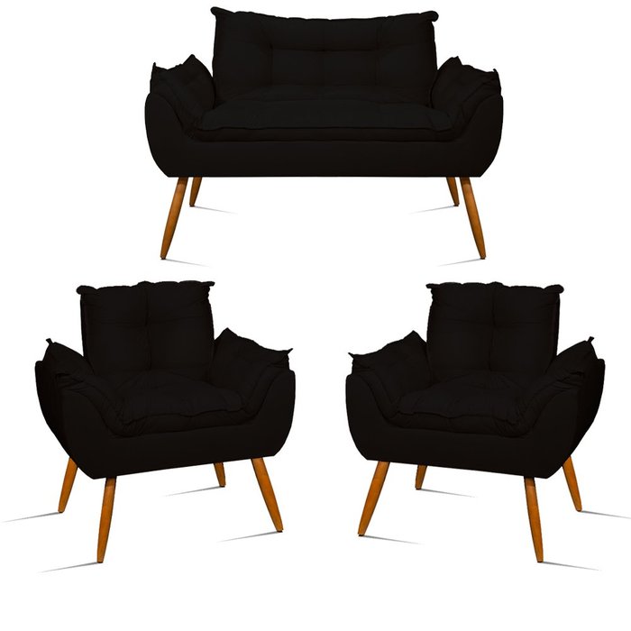 Kit Sofá Namoradeira Opala + 2 Poltronas Opala Balaqui Decor Cor:preto preto