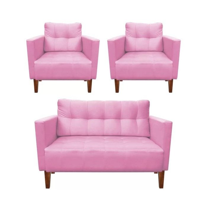 Kit Sofá Retrô Namoradeira 2 Lugares e 02 Poltronas Livia Suede Rosa Bebê - D'Rossi
