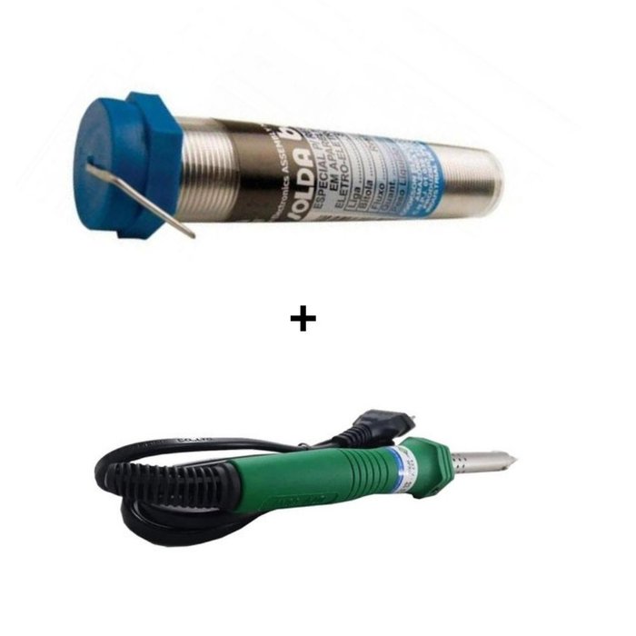 Kit Solda Ferro Profissional 30w 220v + 1 Tubo Estanho 25g