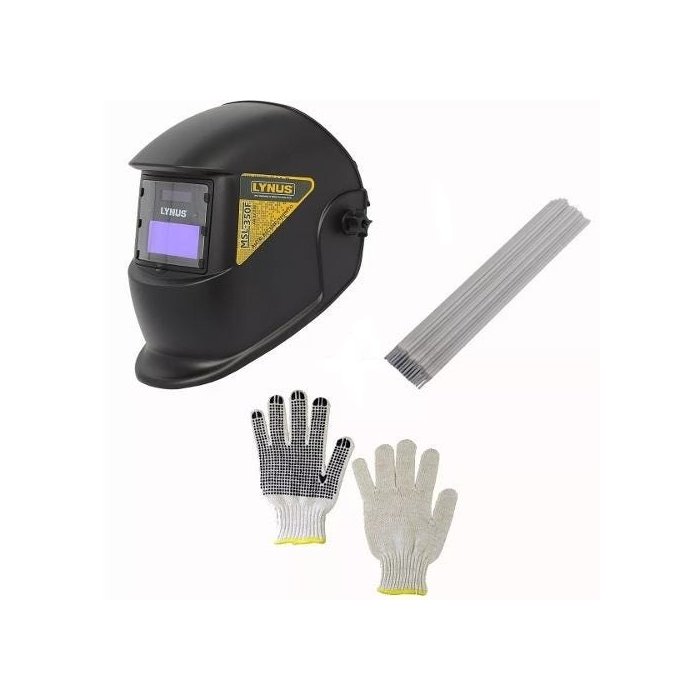 Kit Soldador Mascara Automática 3kg Eletrodo 2 Par Luva