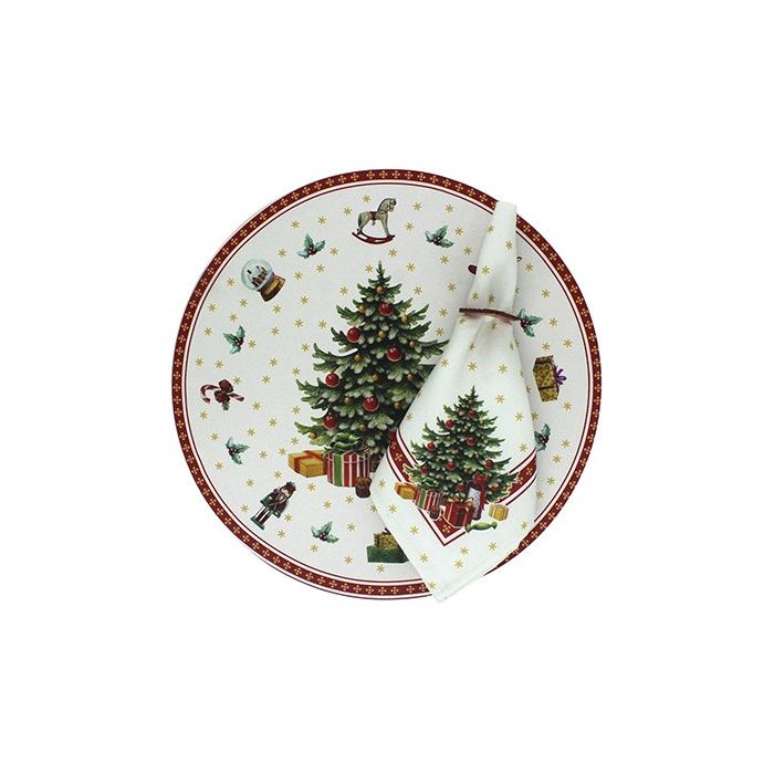 Kit Sousplat + Guardanapo Natal Arvore Nsw 2 Peças com Base