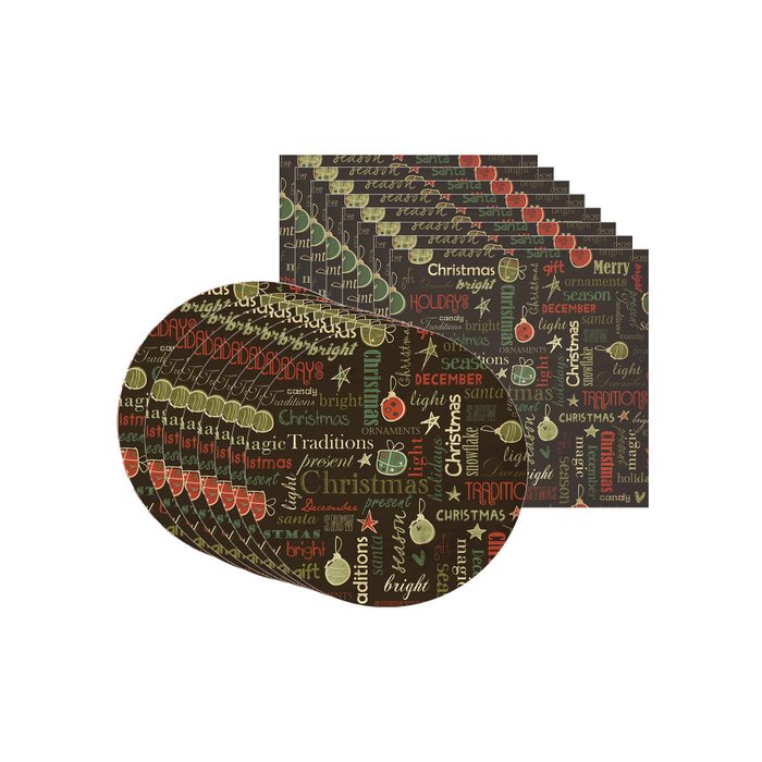 Kit Sousplat + Guardanapo Natal Fundo Palavras - 8 Peças - com Base