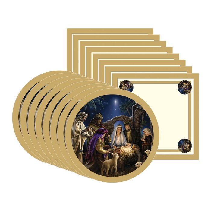 Kit Sousplat + Guardanapo Natal Presépio - 8 Peças - sem Base