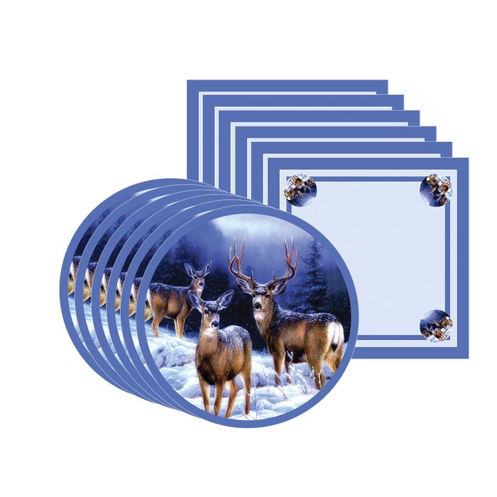 Kit Sousplat + Guardanapo Natal Três Renas - 6 Peças - sem Base