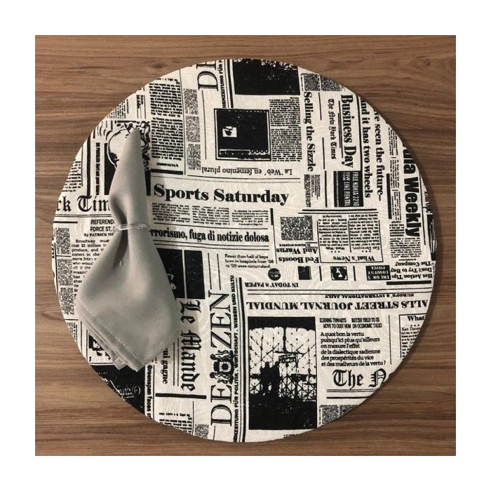 Kit Sousplat Jogo Americano 4 Lugares Completo com Presilhas - Jornal Preto e Branco