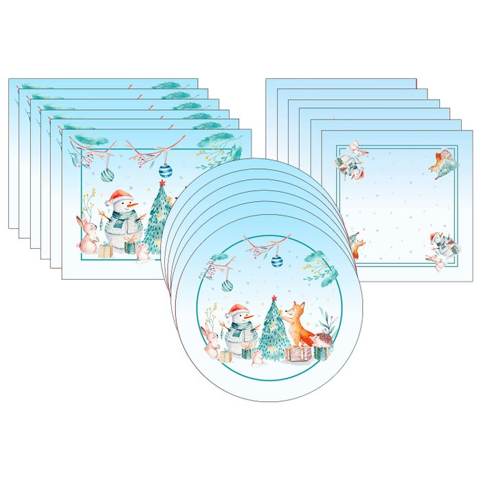 Kit Sousplat + Jogo Americano + Guardanapo Animais - 6 Peças - com base