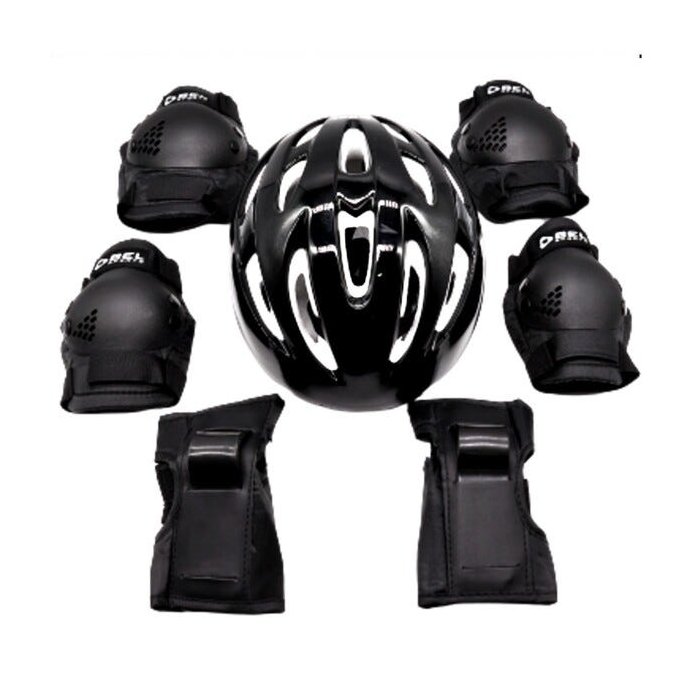 Protege a cabeça, pulsos, cotovelos e joelhos.