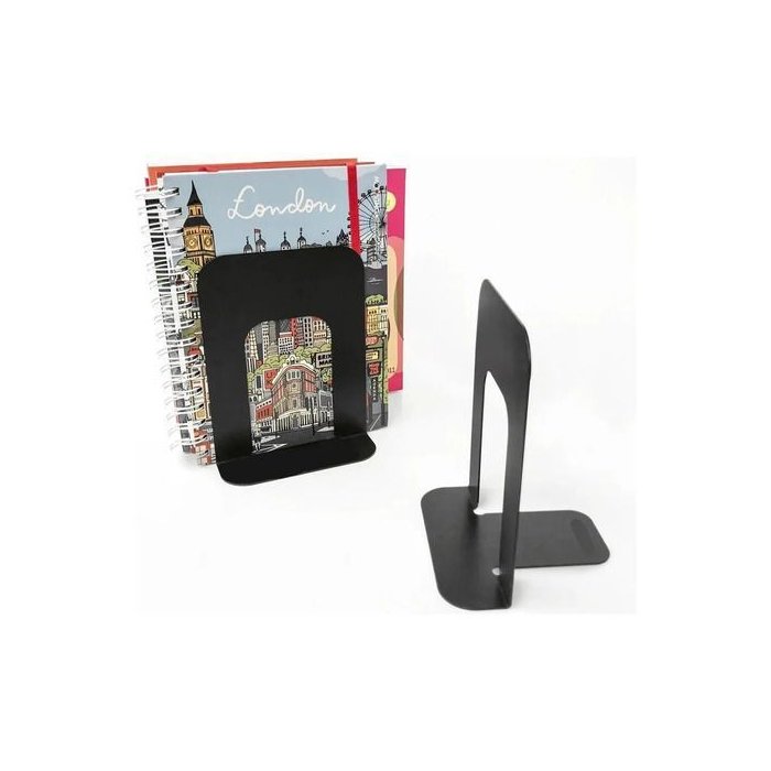 Conjunto com 2 Suportes para Livros Metálicos – Organização e Estilo para Sua Estante Descrição Mantenha sua biblioteca, escritório ou mesa sempre organizados com este Conjunto de 2 Suportes para Livros ABM LTDA, perfeito para dar estabilidade e elegância à sua coleção de livros, pastas e cadernos. Cada suporte possui uma aba de sustentação que desliza sob os livros, utilizando o próprio peso deles para manter tudo firmemente no lugar. Ideal para escritórios, estantes, prateleiras e ambientes de estudo, combina praticidade, durabilidade e design minimalista. Características Design moderno e funcional: Ideal para qualquer ambiente, do escritório à sala de leitura Alta estabilidade: A aba inferior mantém os livros firmes, sem deslizamentos Material resistente: Aço pintado em preto fosco de alta durabilidade Tamanho ideal: Suporta livros, pastas, envelopes e cadernos A4 Uso versátil: Pode ser usado em estantes, mesas, prateleiras e bibliotecas Especificações Técnicas Altura: 16,5 cm Largura: 15 cm Profundidade: 13 cm Cor: Preto Material: Aço reforçado Conteúdo da Embalagem: 1 par (2 unidades) para livros