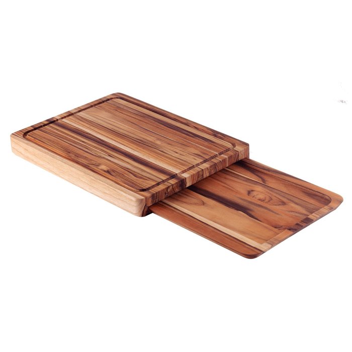 Kit Tábua + Bandeja Churrasco Tramontina em Madeira Teca FSC com Acabamento em Óleo Mineral Tramonti