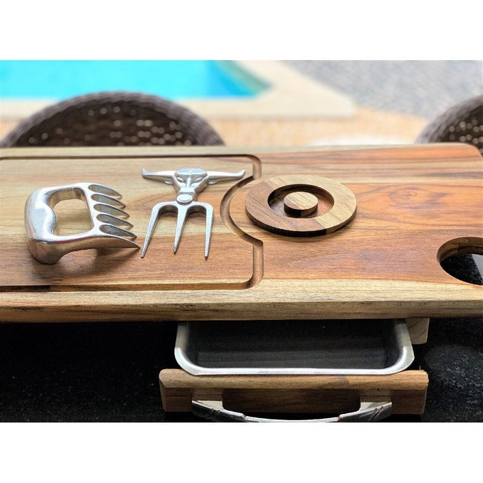 TÁBUA LISA DE CARNE INTELIGENTE PARA CHURRASCO COM PORTA LATA E GAVETA - LISA