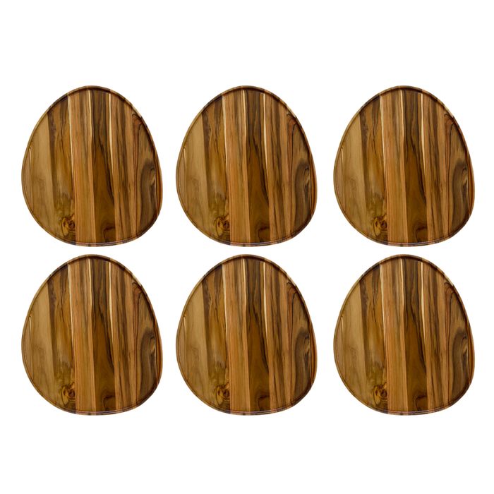 A tábua de madeira de teca tem um tom dourado quente e uma textura fina e uniforme, com veias escuras e linhas que dão um charme especial. Ela tem ótimos acabamentos feitos manualmente, que garantem a qualidade e a durabilidade do produto.
