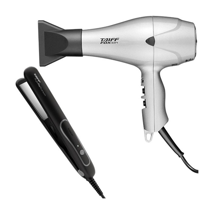 KIT TAIFF - SECADOR FOX ION PRATA 2000W 220V + PRANCHA STYLE PRATA PRO TITANIUM 230ºC BV