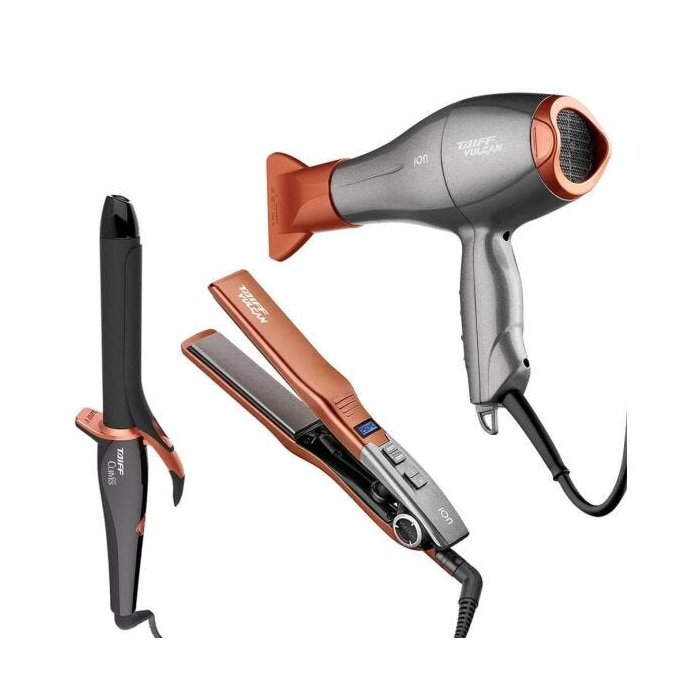 Kit Taiff Vulcan Secador 2400W 127V + Chapa Action Bivolt + Modelador Curves 1 Polegada BivoltContém: