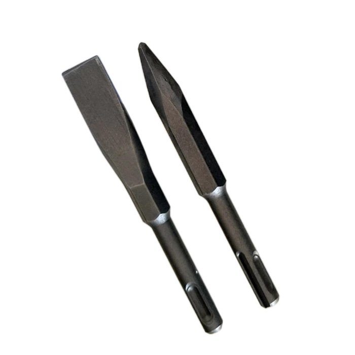 Talhadeira e Ponteira SDS PLUS em aço cromo para demolição com marteletes. Fabricadas em Aço Cromo Temperado, qualidade profissional.