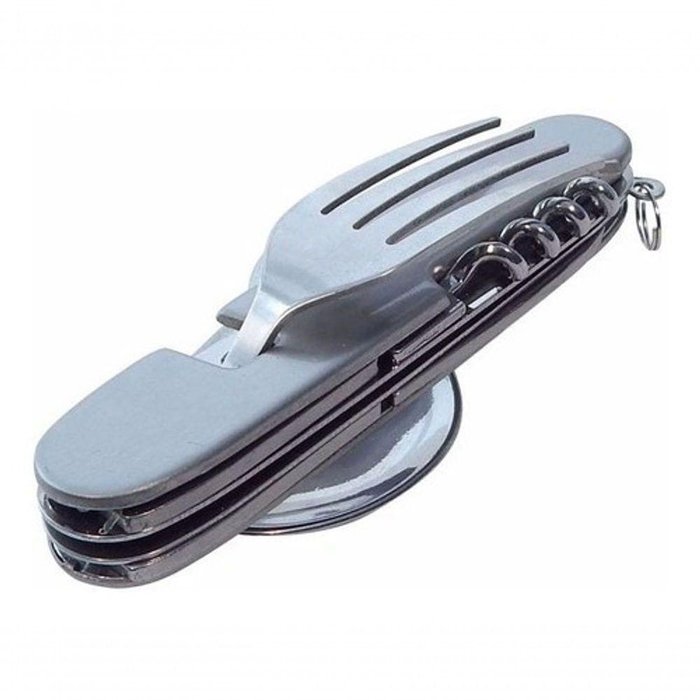 * Desmontável, e vira um Garfo e uma Colher com Faca e Abridor de Garrafas Separados