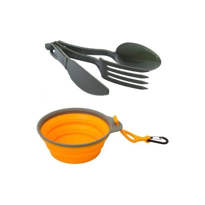 Kit Talheres Camping Polic + Prato Dobrável Silicone Azteq - Verde