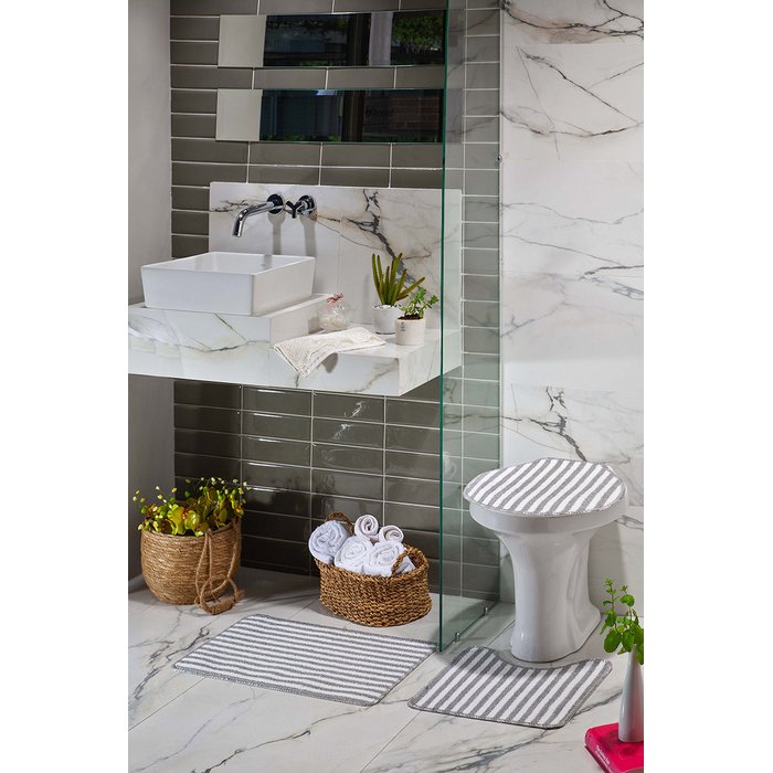 Kit Tapete Banheiro 3 Peças Listras Prata Slim