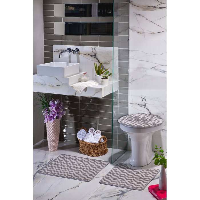 Kit Tapete Banheiro 3 Peças Suave Bege Pratik * COMPOSIÇÃO: 10% ALGODÃO, 28% POLIÉSTER E 62% POLIPROPILENO * MEDIDAS 01 Tapete para Piso 45cm x 60cm 01 Tapete para Vaso 42cm x 45cm 01 Tapete para Tampa 42cm x 45cm * MODELO PRATIK KIT BANHEIRO COM APLICAÇÃO DE E.V.A. *COR BEGE *BASE 100% POLIPROPILENO ANTIDERRAPANTE COM APLICAÇÃO FELTRO