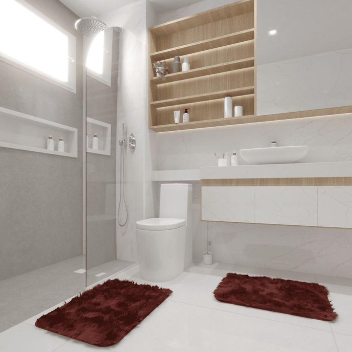 Kit Tapete Banheiro Felpudo Peludo Azul 40 X 60 Cm Marrom