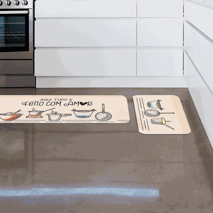 Kit Tapete de Cozinha 2 peças Feito com Amor -