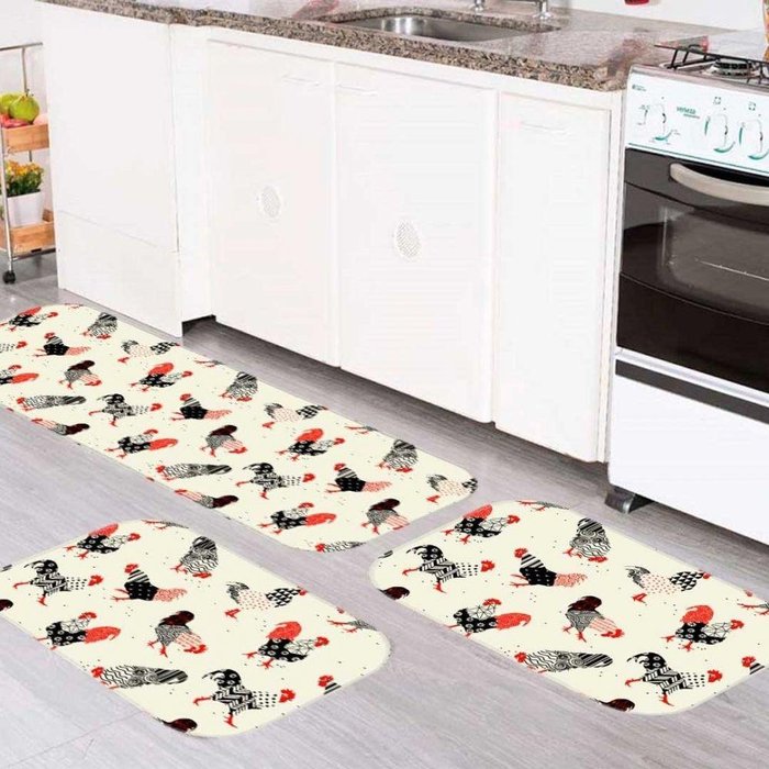 Kit Tapete De Cozinha Galinhas Geometricas Único