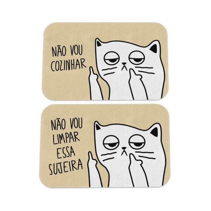Kit Tapetes De Cozinha Gatinho Ranzinza Não Vou Limpar