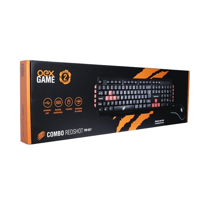 Kit Teclado e Mouse Gamer Redshot TM307 2400 DPI OEX Preto