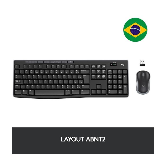 Kit teclado e mouse wireless Logitech MK270, multimídia com 8 teclas de atalho e resistente a respingos