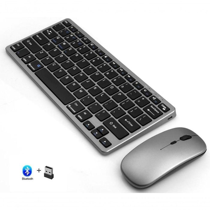 Kit Teclado e Mouse sem Fio Bluetooth + 2.4ghz Bateria Recarregavel