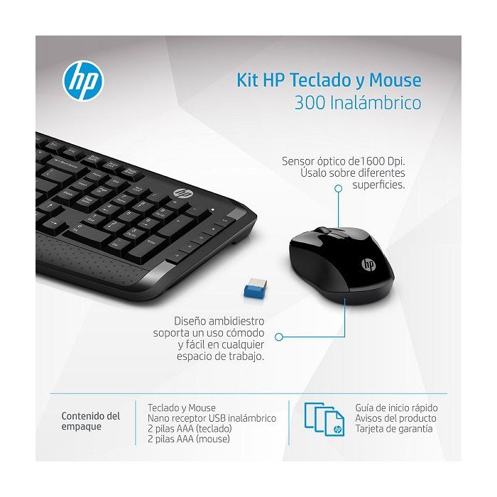 Kit Teclado e Mouse sem Fio HP 300 Preto 2.4GHZ