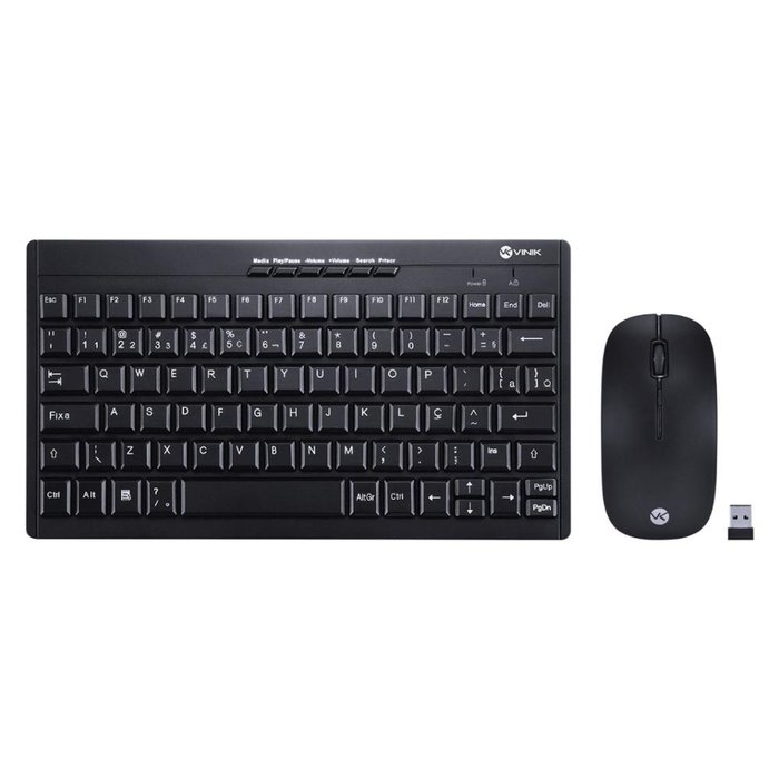 Kit Teclado e Mouse sem Fio Vinik Dynamic Flat Mini Dc110 - Abnt2 - 1600dpi - Receptor Usb - Preto Preto