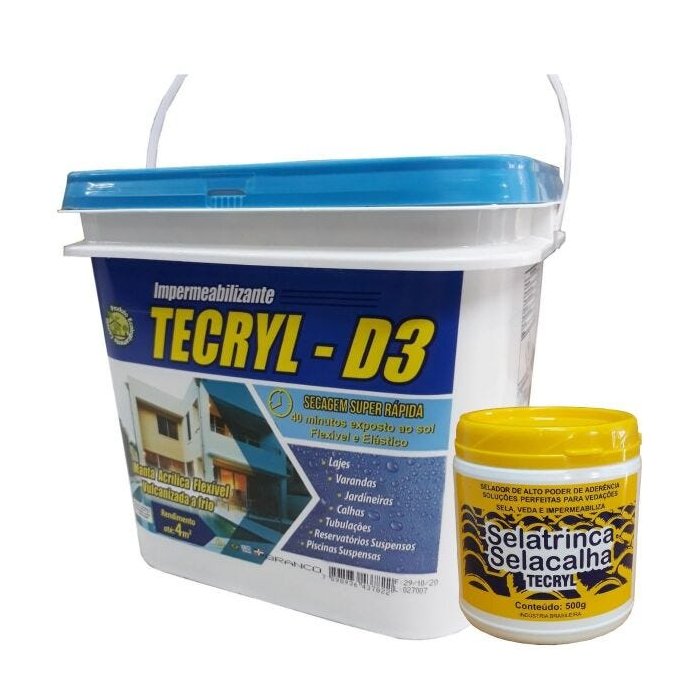 Kit Tecryl D3 Impermeabilizante 18kg Branco Com Tecril Selatrinca Selacalha de 500g