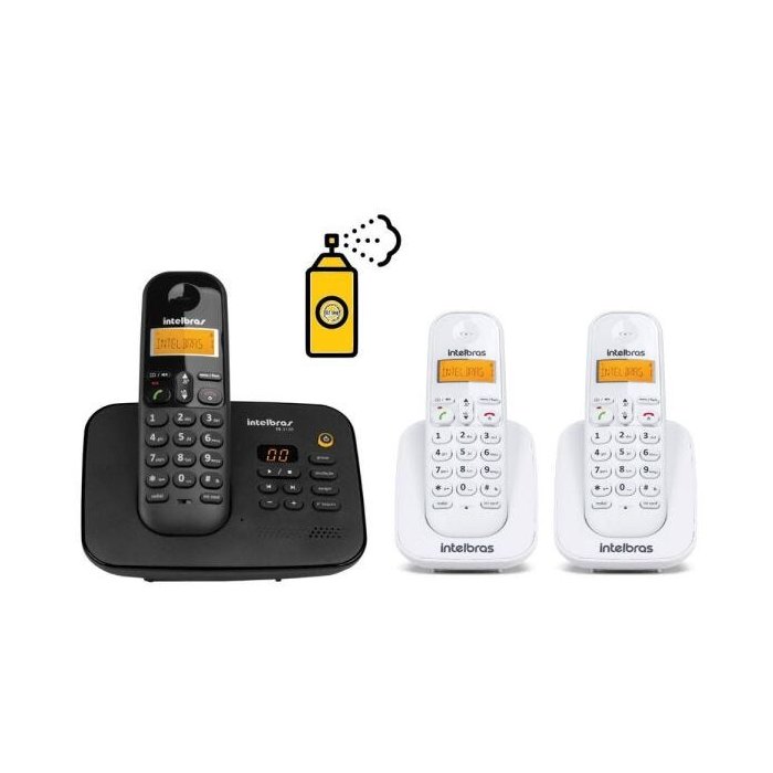 Conteudo do KIT: 1 Unidade - Telefone sem Fio TS 3130 Com Secretaria Eletronica Intelbras PRETO (1 fone, 1 base, 1 bateria recarregável, 1 cabo de linha telefônica, 1 adaptador de tensão 110-220 V, 1 manual do usuário) 2 Unidades - Ramal sem Fio digital TS 3111 Intelbras BRANCO ( 2 Fone - 2 Carregador de Bateria Para Ramal - 2 Bateria recarregavel - 2 Adaptador de Tensao Bivolt - 2 Manual do Usuario ) 1 Unidade: desodorante aero feminino para apresentação do Produto. Alcance: Ate 50 Metros em Ambientes Fechados e Com Barreiras, e Ate 300 metros em Local Aberto. ( O alcance pode variar de acordo com a quantidade de barreiras ou interferências). Cor TS 3130: Preto Cor TS 3111: Branco Telefone sem Fio com secretária eletrônica digital com gravação de até 59 mensagens. Possui design ergonômico e bateria de alta duração, perfeito para quem utiliza o aparelho por longas horas ou necessita de mobilidade durante as ligações. Capacidade para até 7 ramais (base + 6 ramais)¹ ¹ Funções realizáveis somente entre Telefones Intelbras das séries TS 31, TS 40 e TS 60 registrados em uma mesma base. Identificação de chamadas: Sim Display luminoso: Sim Sinalização: Identificação de chamadas DTMF/FSK Frequência: 1,9 Ghz (1.910 - 1.920 Mhz). Data / Hora: Sim Agenda: Sim Capacidade da Agenda: Agenda para até 70 nomes/numeros Memória para registro de chamadas: Registro de chamadas: 15 recebidas, 20 não atendidas e 15 realizadas Viva Voz: Não Bloqueio de teclado: Sim Bloqueio de discagem com uso de senha: Sim Alarme: Sim Localizador do monofone (page): Sim Indicador de Chamadas Não Atendidas: Sim (ícone no Display) Toques de campainha: 7 opções de toque Volume da campainha: 5 opções de volume Volume de recepção: Há 5 níveis de volume de recepção de áudio(Padrão de fábrica 3) Tons do teclado: Sim Seleção Tom/Pulse: Sim Modo silencioso do fone (#): Sim Atendimento automático: Sim (#) Funções Flash, Rediscar e Mudo: Sim Compatibilidade de Ramais: Capacidade para até 7 ramais (base + 6 ramais)¹ Transferência de chamada: Sim Conferência: Sim Secretária Eletrônica: Sim Idiomas do menu: Menu trilíngue em português, espanhol e inglês Montagem na Parede: Não Antena: Interna Bateria: 2,4 VDC 600mAh Tempo de conversação estimada (bateria): 200 h em modo repouso/ 20 h em uso Belt Clip: Não Voltagem: 100 - 240 V ~ 50/60 Hz (automático) Garantia: 12 Meses Dimensões (AxLxP)- mm: 162 x 148 x 96 mm Peso liq. Aproximado do Produto (Kg): 0,360 g Maiores informações: Tecnologia DECT 6.0 Secretária eletrônica digital com gravação de até 59 mensagens Agenda para 70 contatos Registro de 15 chamadas atendidas, 20 não atendidas e 15 originadas 7 tipos de toque Acesso remoto à secretária eletrônica Eco Mode, para redução do consumo de energia Bloqueio de chamadas originadas Comunicação interna, conferência a três e transferência de chamadas Funções realizáveis somente entre Telefones Intelbras das séries TS 31, TS 40 e TS 60 ¹ Ramais compativeis : TS 3111, TS 40 R e TS 60 R