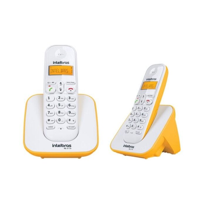 Conteudo do KIT: 2 Unidades - Telefone sem Fio digital TS 3110 Intelbras ( 2 fone, 2 base, 2 bateria recarregável, 2 cabo de linha telefônica, 2 adaptador de tensão 110-220 V, 2 manual do usuário ) O TS 3110 Intelbras pode ser usado como base ou como ramal. Voce receberá 2 aparelhos iguais e no momento da instalação deverá configurar um aparelho como base e depois configurar o outro aparelho como ramal. Tipo de Instalação: O aparelho que voce escolher para ser a base deve ser conectado a linha telefônica e conectado tambem a rede elétrica. O aparelho que voce escolher para ser ramal devera ser conectado apenas na rede elétrica. Cor: Branco com Amarelo O Telefone sem Fio TS 3110 possui design ergonômico e bateria de alta duração, perfeito para quem utiliza o aparelho por longas horas ou necessita de mobilidade durante as ligações.Capacidade para até 7 ramais (base + 6 ramais) Alcance: Ate 50 Metros em Ambientes Fechados e Com Barreiras, e Ate 300 metros em Local Aberto. ( O alcance pode variar de acordo com a quantidade de barreiras ou interferências) Identificação de chamadas: Sim – DTMF/FSK Display luminoso: Sim Frequência: 1,9 Ghz (1.910 - 1.920 Mhz) Data / Hora: Sim Agenda: Sim Capacidade da Agenda: Agenda para até 70 nomes/numeros Memória para registro de chamadas: Registro de chamadas: 15 recebidas, 20 não atendidas e 15 realizadas Viva Voz: Não Bloqueio de teclado: Sim Bloqueio de discagem com uso de senha: Sim Alarme: Sim Localizador do monofone (page): Sim Indicador de Chamadas Não Atendidas: Sim (ícone no Display) Toques de campainha: 7 opções de toque Volume da campainha: 5 opções de volume Volume de recepção: Há 5 níveis de volume de recepção de áudio(Padrão de fábrica 3) Tons do teclado: Sim Seleção Tom/Pulse: Sim Modo silencioso: Sim Atendimento automático: Sim Funções Flash, Rediscar e Mudo: Sim Compatibilidade de Ramais: Capacidade para até 7 ramais (base + 6 ramais) Transferência de chamada: Sim Conferência: Sim Secretária Eletrônica: Não Idiomas do menu: Menu trilíngue em português, espanhol e inglês Montagem na Parede: Não Bateria: 2,4 VDC 600mAh Tempo de conversação estimada (bateria): 200 h em modo repouso/ 20 h em uso Belt Clip: Não Voltagem: 100 - 240 V ~ 50/60 Hz (automático) Cor: Preto Garantia: 12 Meses Dimensões(AxLxP)- mm: 160 x 105 x 100 mm Peso liq. Aproximado do Produto (Kg): 0,309 g Maiores informações: Tecnologia DECT 6.0 Eco Mode para redução do consumo de energia Comunicação interna, conferência a três e transferência de chamadas