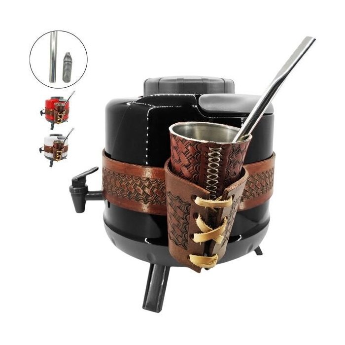 Kit Tereré 1 Garrafa Térmica 5L 1 Porta Cuia Cinta de Couro 5cm 1 Cuia Couro Inox 1 Bomba Mola - Pre