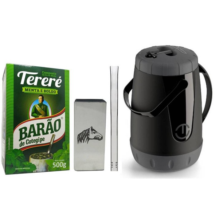 Kit Tereré Copo Quadrado Inox + Bomba Inox Larga 21cm + Erva mate Barão 500gr + Garrafa Térmica Unitermi 2,5Lt APÓS A COMPRA INFORME POR MENSAGEM OU WHATSAPP O DESENHO DO COPO E A COR DA GARRAFA TÉRMICA E O SABOR DA ERVA MATE Copo / Cuia Disponível em diversos desenhos: Cavalo TE(x)reré Fé Rosario Nossa Senhora Aparecida Agronomia Casal Garcia Liso Garrafa Térmica Tereré Unitermi Pavia 2,5l Disponível nas cores: Amarelo Azul Preto Verde Tiffany Vermelho Erva Mate Tereré Barão 500 gramas: Menta e Boldo Menta e Limão Menta Ice Abacaxi e Hortelã Natural Cuia/Copo: Medidas: 11cm x 5cm Capacidade em volume: 200ml Material: Aço Inox Bomba: Larga, Chata, Lisa. Tamanho: 21cm x 1,5cm Material: Aço inox 304 Você esta comprando: 01 Unidade Cuia para Tereré Quadrado em Inox 01 Unidade Bomba Tereré Inox Larga 21cm 01 Unidade Garrafa Térmica Tereré Unitermi Pavia 2,5lt 01 Unidade Erva Mate Tereré Barão de Cotegipe 500gr