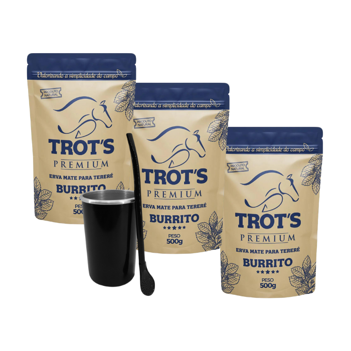 Kit Tereré Copor Térmico E Bomba Lisa Preto Aports 3 Ervas Trots 500g Cada - Burrito